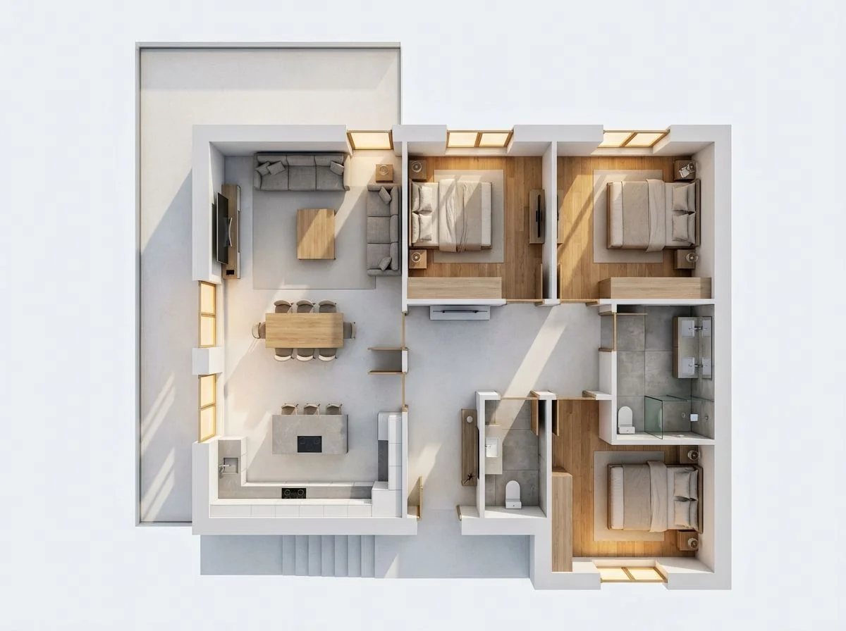 3D Çizim ve Görselleştirme TasarımlarıProjelerin uygulama öncesi sürecinde hazırlanan, mekânın nihai halini yansıtan üç boyutlu çizim ve görselleştirme çalışmalarıdır.